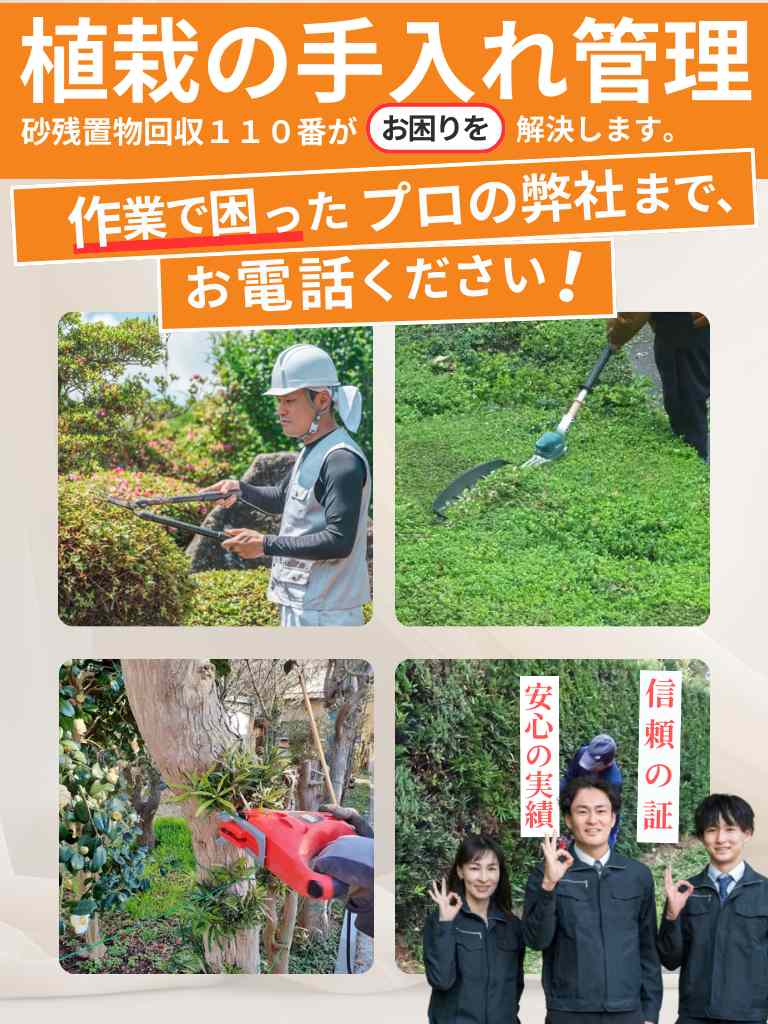 植栽の管理でお困りなら仙台市で物件の価値と美観を守る不動産残置物回収110番にお電話ください。無料見積もり・単発のご依頼も大歓迎です!