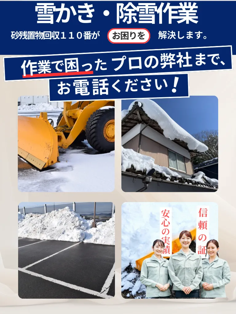 雪かきから除雪・排雪、定期的な除雪プランのご提案まで、仙台市の不動産残置物回収110番がワンストップで対応します!お気軽にお問い合わせください。